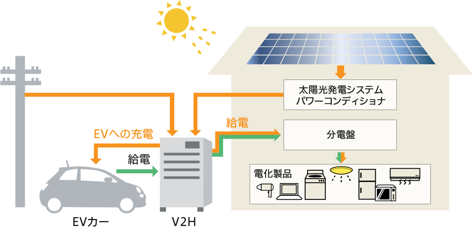 【V2H】で電気自動車・自宅の電気・太陽光の電力をつなげて活用!